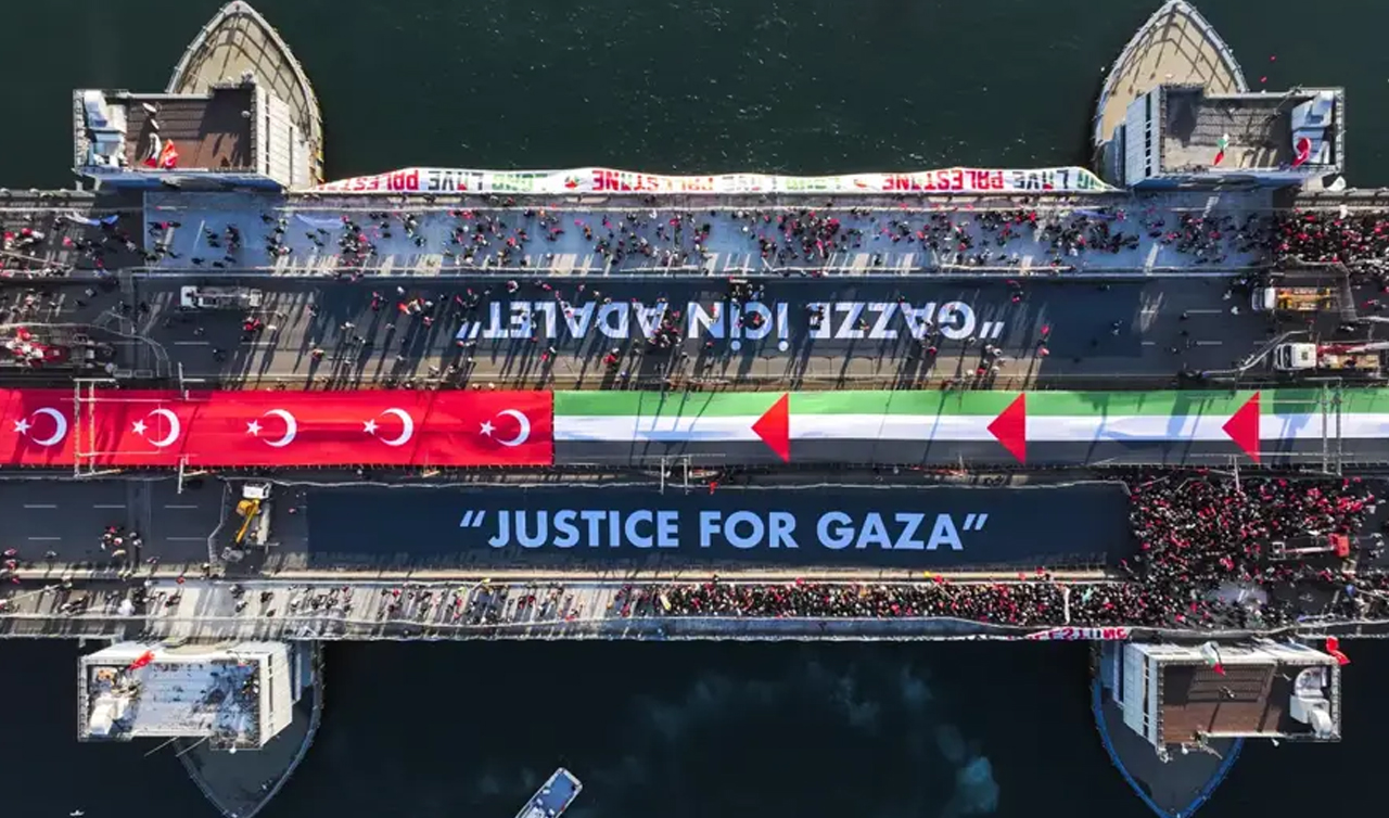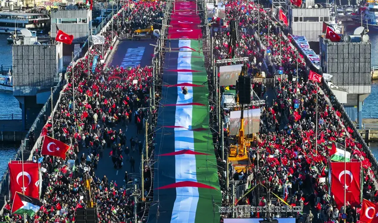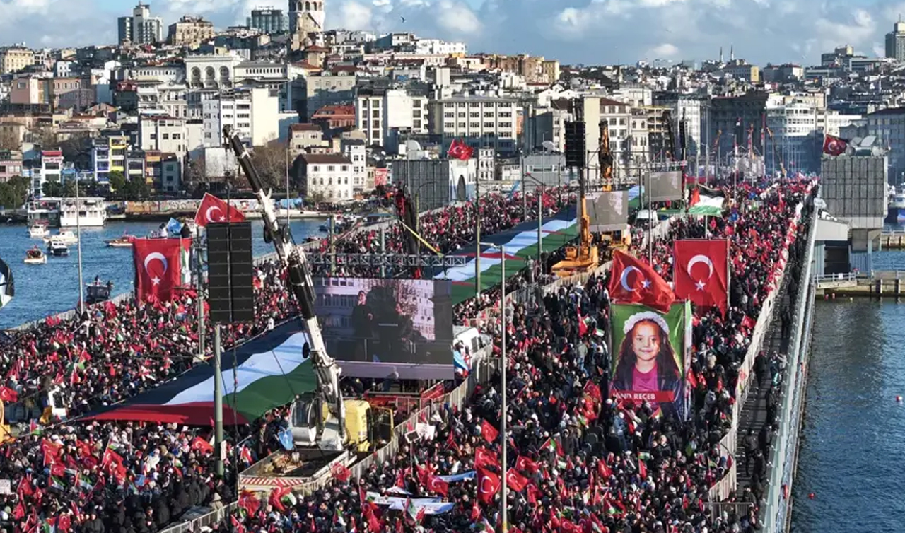 İnsanlık İttifakı ve Milli İrade Platformu tarafından "Sinmiyoruz, susmuyoruz Filistin'i unutmuyoruz" sloganıyla Galata Köprüsü'nde tarihi bir buluşma gerçekleştirildi. Yeni yılın ilk sabahında Galata Köprüsü'nde düzenlenen Filistin'e destek yürüyüşüne binlerce vatandaş katıldı. Ayasofya-i Kebir Camii Şerifi'nde kılınan sabah namazının ardından oluşan insan seli Galata Köprüsü'ne yürüdü. Vatandaşlar ellerindeki Türk ve Filistin bayrakları ve boyunlarına bağladıkları kefiyelerle geniş güvenlik önleminin alındığı köprüye geldi.